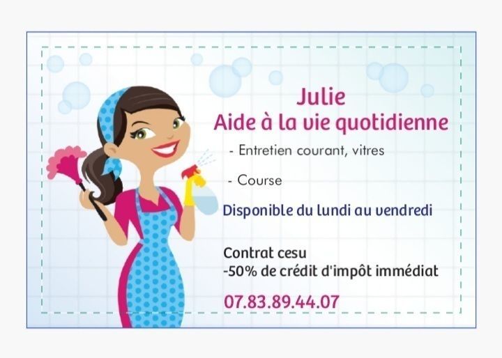 Avec expérience de 10 ans. Discrète, sérieuse avec recommandation. axe entre Lons le saunier/ Ruffey sur Seille/Mouthier-en-Bresse. CESU , tél 07.83.89.44.07